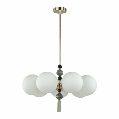 Odeon lambası 5405/7Palle lambaların havadar çizgisi el yapımı seramiklerle dekore edilmiştir. Oluklu seramikleri, altın kaplama metali ve buzlu beyaz camı güzel bir şekilde birleştirir. Seramik dekor, açık yeşil püskül vurgulu gri tonlarında yapılmış ve siyah cam boncuklarla tamamlanmıştır. Sarkıt ve avizelerin yüksekliği bir kadran çubuğu sayesinde ayarlanabilir.