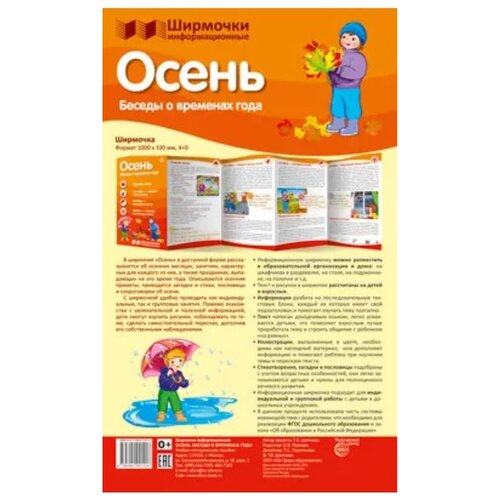 Dans l'écran « Saisons. Automne » raconte de manière accessible les mois d'automne, les activités typiques de chacun d'eux et les vacances qui tombent au cours de ce mois. Les signes de l'automne sont décrits, des énigmes et des poèmes, des proverbes et des virelangues sur l'automne sont donnés. Le livret destiné aux parents discute des activités d'automne et des jeux de plein air, particulièrement appréciés des enfants, et donne des conseils sur la réalisation de travaux manuels d'automne.
