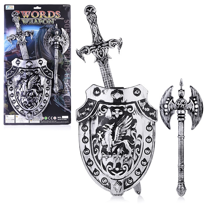 Épée, bouclier, hache de la RPC, sur une feuille
