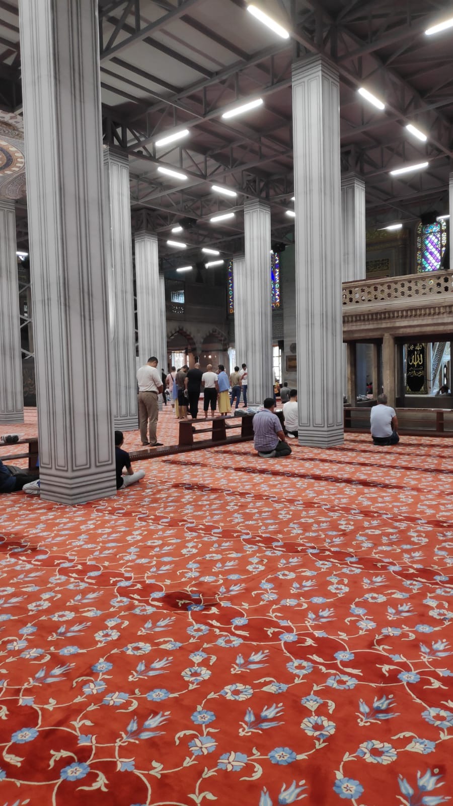 Как только мы зашли вовнутрь, то сразу окунулись в атмосферу балагана, мусульманства и запаха немытых ног. Дело в том, что на входе всех заставляют разуваться. И от этого в воздухе повисает зловещий запах недельных носков. Так себе ощущение. Но интересно. Кругом туристы. А за загородкой местные молятся. Вдыхают, так сказать, аромат демократии разных стран. Ну и мы своего добавили.