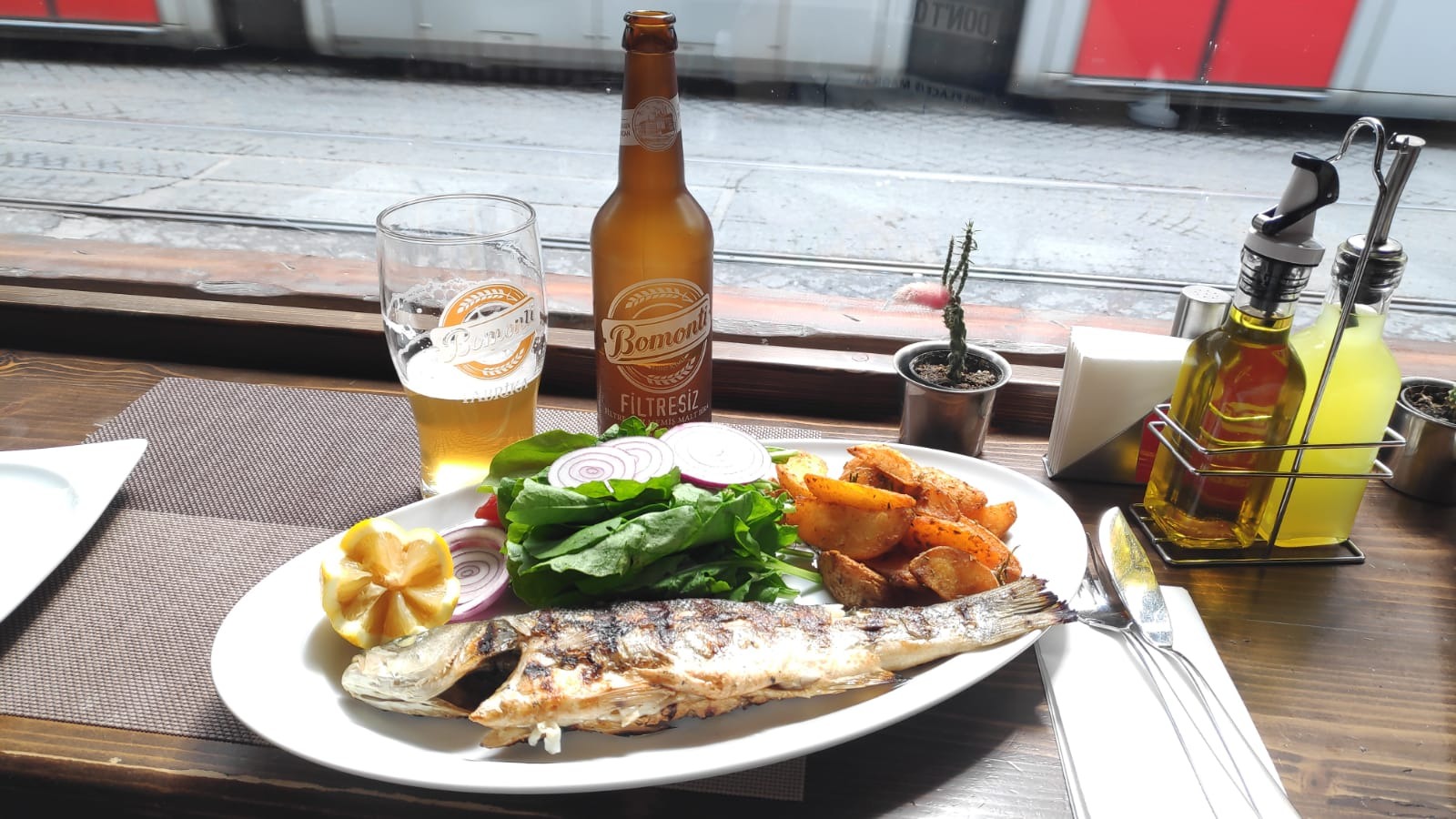 Что же касается других заведений - все если не на уровне, то вполне съедобно. Единственный минус - мало где есть бесплатный интернет. И его приходилось искать. Но с помощью оффлайн карт на мобильном телефоне это не составляет труда. Именно там я нашел бар Red River Pub. А в нем и интернет, и мясо, и пиво. Даже получилось один раз "Сибаса" заказать.