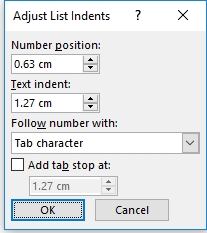 ۱- درصورتیکه از شمارهگذاری اتوماتیک در متن معمولی خود استفاده کرده باشید، را راستکلیک کردن بر روی شماره اتومایتک و انتخاب adjust list indent پنجره زیر باز میشود.