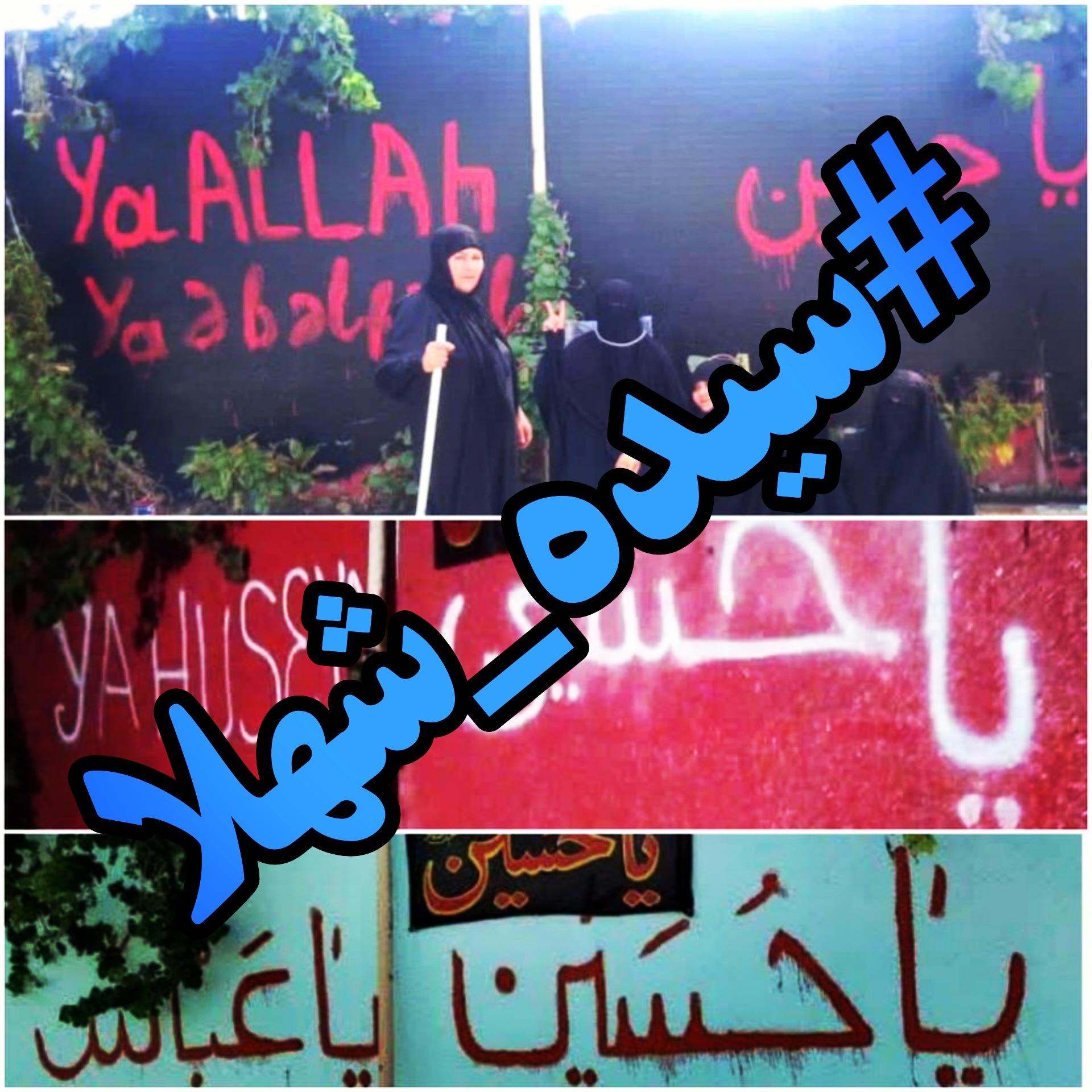 از تورنتوی کانادا تا ملبورن استرالیا در کشوری که ۹۸ درصد مسلمان و ۸۵ در صد شیعه پلیس سه بار روی ياحسين را رنگ زد و لی سیده شهلا دوباره ياحسين نوشت پلیس خانه را محاصره کرده و اعلام کرد تا عذر خواهی نکند نمیگذارند غذا به آنها برسد