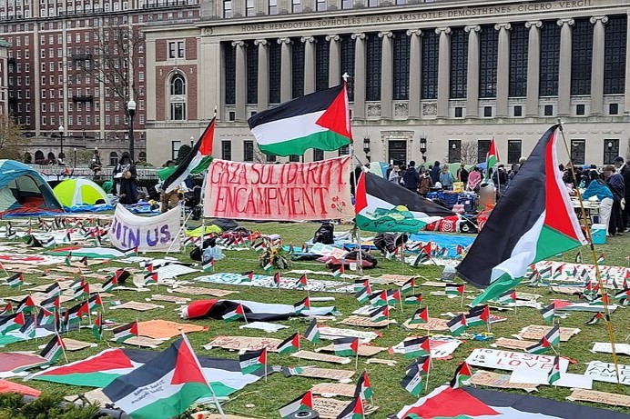 4月17日,纽约哥伦比亚大学的师生在校园内组织校园营地,以此来声援一直遭受以色列犹太复国主义政权残酷种族灭绝攻击的巴勒斯坦人民。然这一运动在美国各地传播的导火索是来自哥伦比亚大学校长沙菲克的诽谤,他声称声援巴勒斯坦运动为反犹太主义,并呼吁警察前来校园镇压抗议活动。