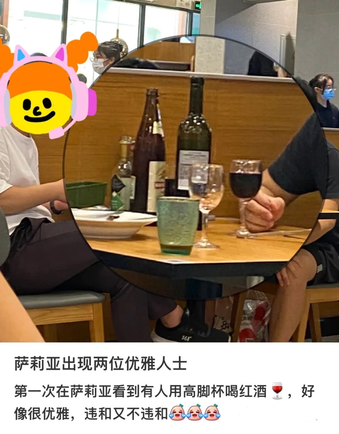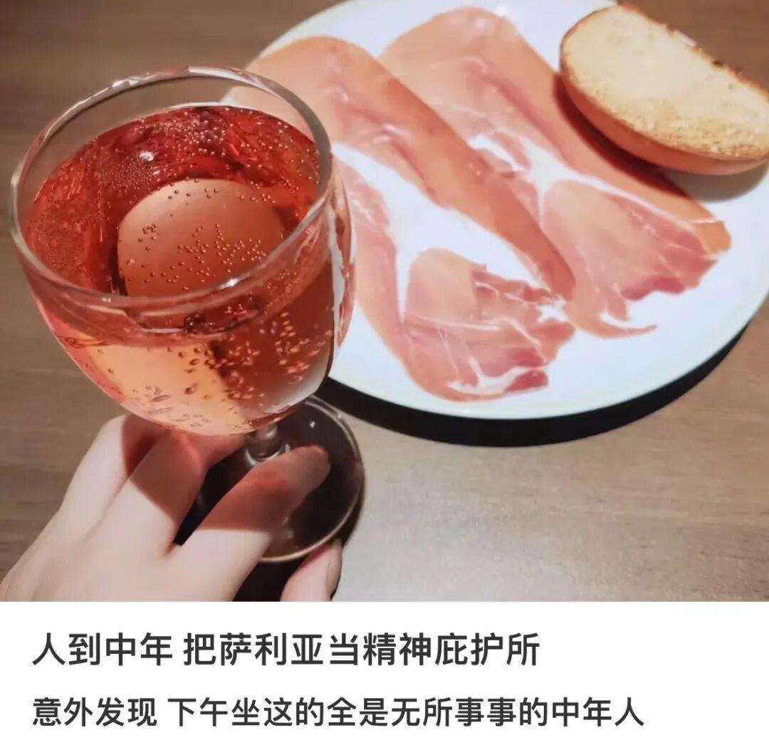 “比起在法餐厅里正襟危坐,琢磨吃哪盘肉该用哪套刀叉。在萨莉亚独自大快朵颐,喝着便宜好喝的起泡酒,才是真的看开了。”