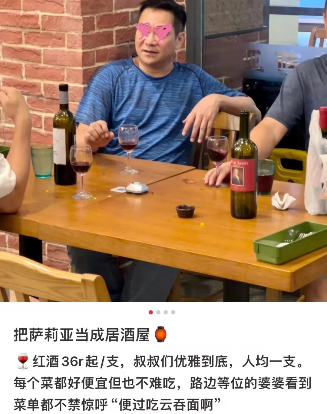 “如果你下班后和朋友们去唱K烧烤,老婆难免颇有微词。但在萨莉亚组局,也能喝点小啤酒,炫点小烧烤,老婆也只会默认我只是馋碳水了,不必多加解释。”