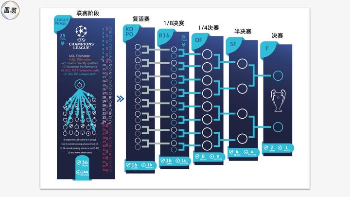 欧冠的联赛阶段除去协会直通的25个名额、欧冠冠军和欧联杯冠军各1个名额以及欧洲表现席位的2个名额,还剩7个通过资格赛产生的名额,其中5个归于冠军路径(Champions path),2个归于联赛路径(League path)。