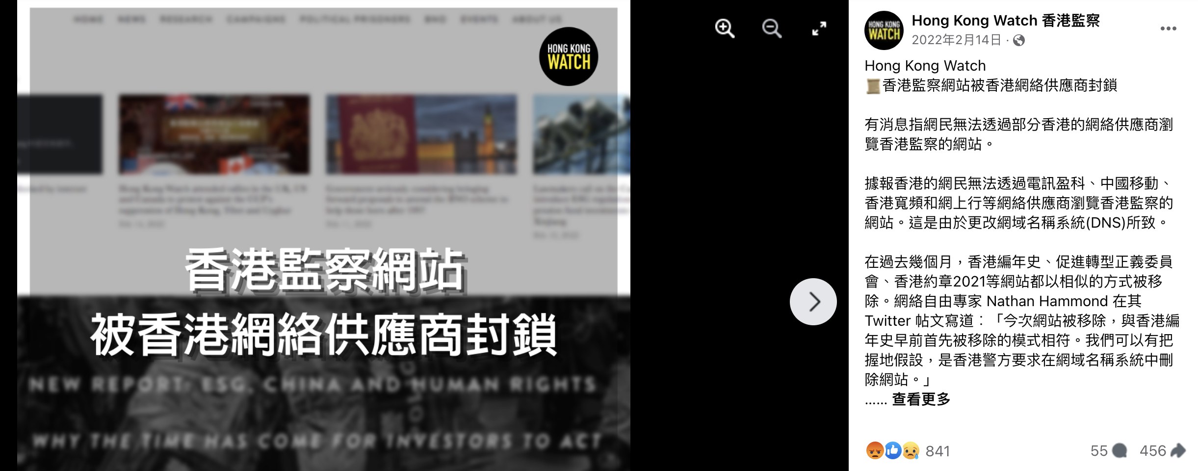 类似网站“被墙”的情况也开始零星出现。其中最受关注的是 2020 年 7 月香港国安法正式实施以来,HKChronicles、2021 HK Charter、Hong Kong Watch 等政治性网站陆续受到屏蔽。在受到质疑时,警方安全处曾引用国安法第 43 条作为依据,其中规定,如若电子平台上的信息被怀疑可能导致危害国家安全罪行,可要求网络服务商将内容移除。