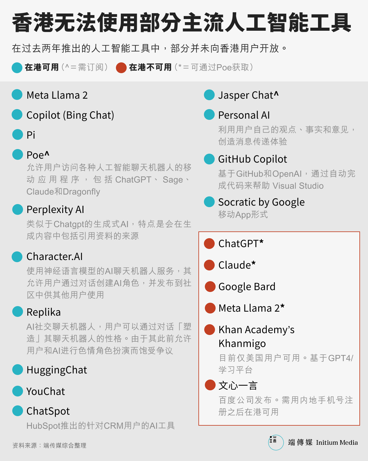 尽管 OpenAI 和 Google 等公司从未正式说明为何选择不向香港提供服务。大多数观点都认为是出于政策风险的考量。“因为 AI 会‘乱讲话’。他们不想要这个无谓的风险,他们也不想花费这个成本跟政府理论说,为什么这个可以,那个不可以,简单来说就是,那我们先不要进入好了。”邝颂晴说。
