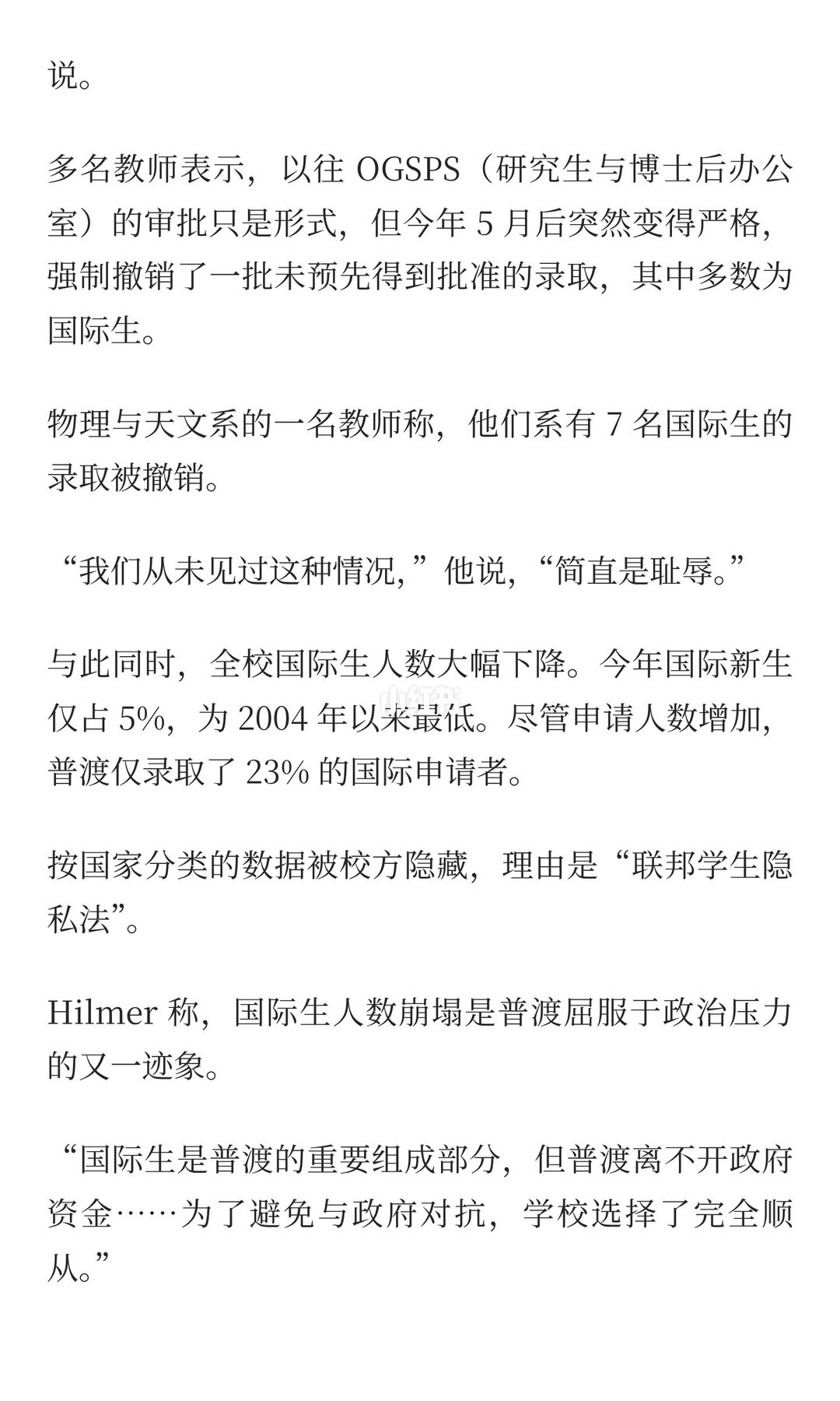 这些学生有的已经租好房、有的拒掉其他 offer、有的甚至已经搬去普渡附近 、很多人持有 F1 签证,可能因此遭遇身份风险 。结果学校一句:“你的录取未通过最终审批”, 就让他们“原地失学”。这已经被普渡内部教授称为前所未有的耻辱事件。