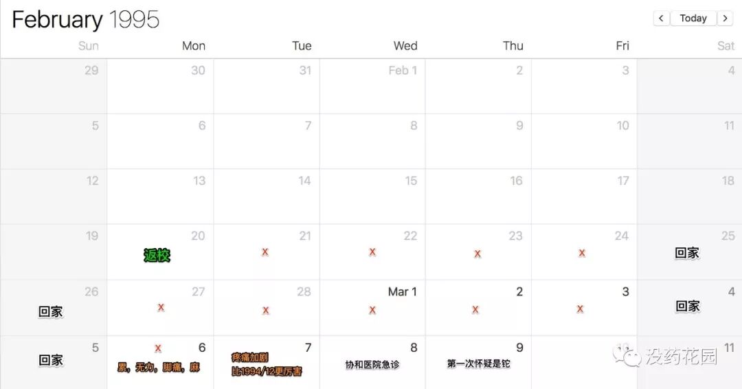 《南方人物周刊》的报道提到,3月2日(周四),朱令“已明显感到身体不适”。我相信这篇的时间写错了。再次一次出现疼痛,应当是3月6日那天,这才符合后来看急诊的时间。