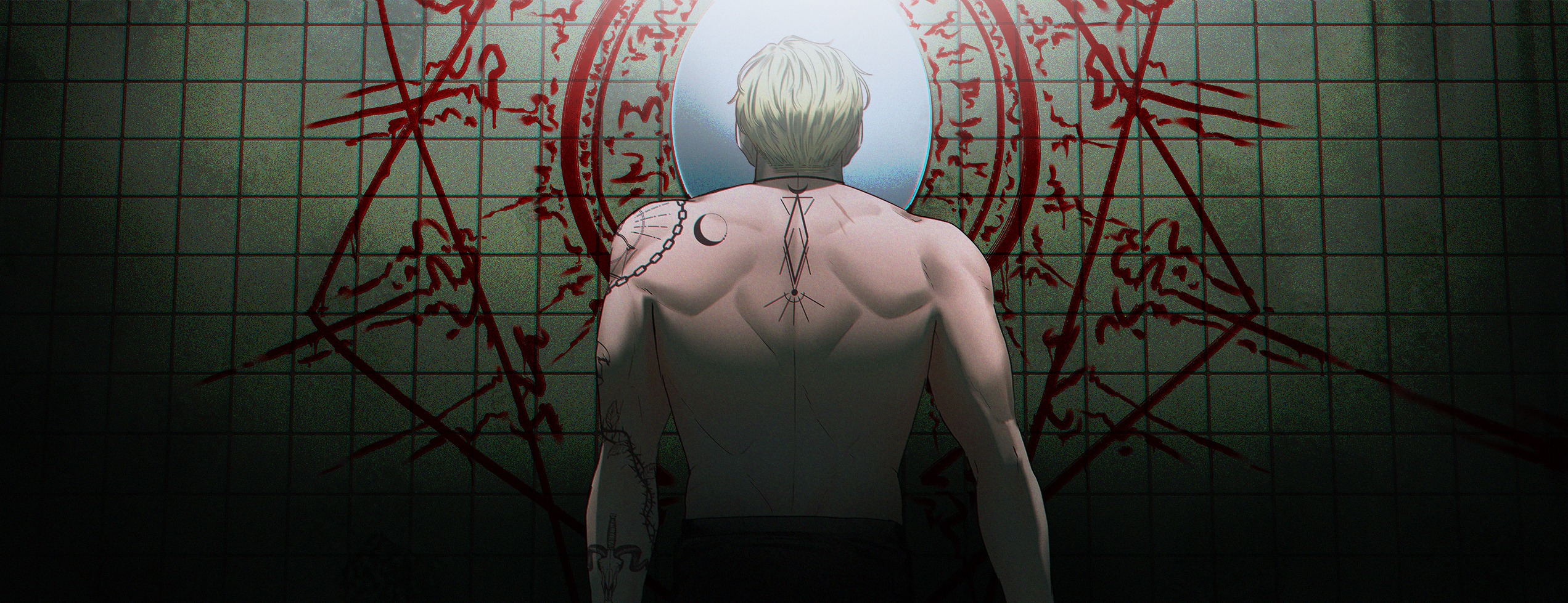 他死死瞪著鏡子裡的一切,雖然清楚裡面不會出現任何東西,牆上塗滿了血,身上還帶著骨頭,那東西不可能敢出現,但他還是無法控制地吞了口水,手臂因長期壓迫感到麻痺,但維德依然撐在那裡,直到手機傳來的震動才終於讓他放棄抵抗。