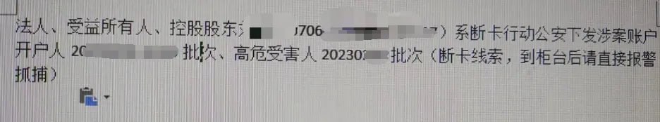 那就是你进入了涉案账户的断卡线索名单里面,银行是有提示直接报给叔叔的。 而我们散户正常办理业务是不需要有这个担心的,所以这位咨询的粉丝六叔就告诉他正常去问到情况,然后去处理即可。