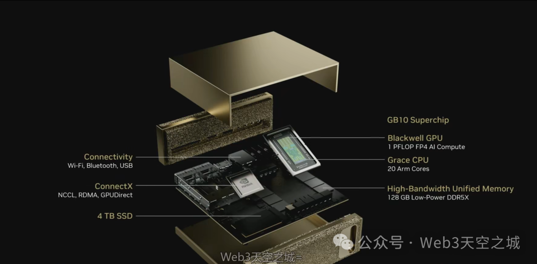 如果您使用PC或Mac,它就是一个运行在您桌面的云计算平台,您可以将其用作Linux工作站。 如果您需要双位数性能,只需使用ConnectX连接,它便具备Nickel、GPU Direct等功能,开箱即用,就像一台超级计算机,所有超级计算堆栈都可用,例如英伟达Digits项目。