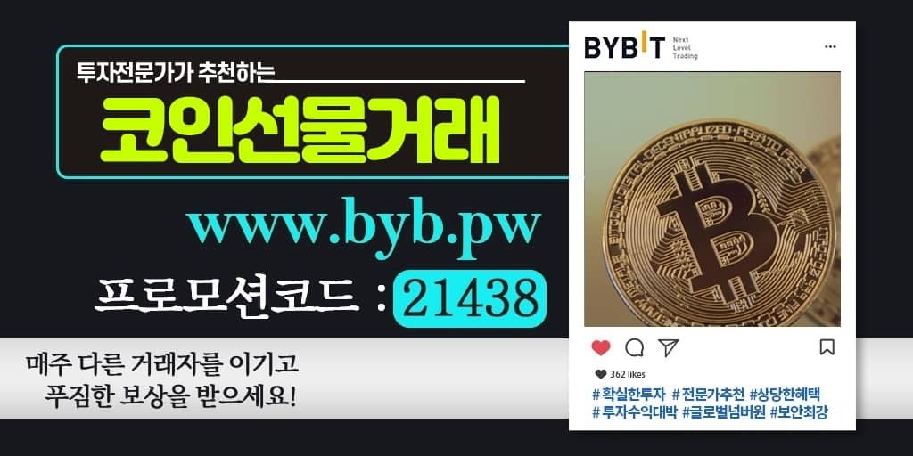 ▶바이빗(Bybit) 모든코인 최대 100배 레버리지◀레퍼럴(수수료할인) 코드 21438]회원가입시 레퍼럴 입력란에 "21438"을 꼭 넣어주세요 클릭!!!