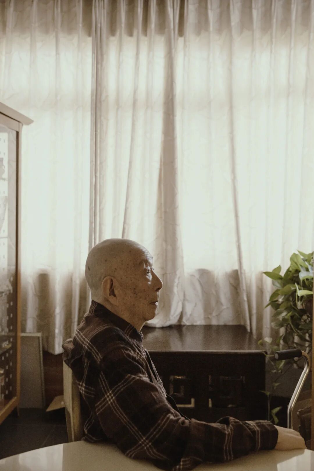 他觉得上午聊天比较好,虽然是他最脆弱的状态——9点和10点半两位理疗师分批次来按摩软僵的手臂。中风是去年夏天的事,那之后,他的半边身子无法动。被固定在床上的是一位衰老的普通人,鼻里有氧气管,需要由家政工随时递上水。按摩时没有什么表情,风浪里打滚近一个世纪,他的眼神定定的,眼珠子呈现一种岁月打磨过的淡蓝色。聊到中间他偶尔说,「疼」。