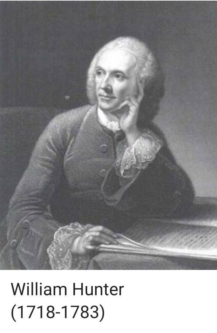 William Hunter (1718-1783) fue pupilo y aprendiz del medico W. Smellie (1697-1763) ambos consideraban que la “partería” debería ser considerada como una ciencia, por la complejidad que esta representaba a pesar de que en aquella época aún no se había escrito mucho sobre esta.