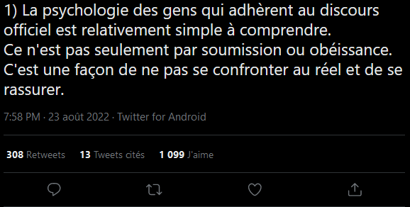Voilà quelques tweets qui mon beaucoup plus, que je vous remets ici, j'en profite aussi pour mettre le lien de mon profil twitter ; https://twitter.com/legrosbide ✌