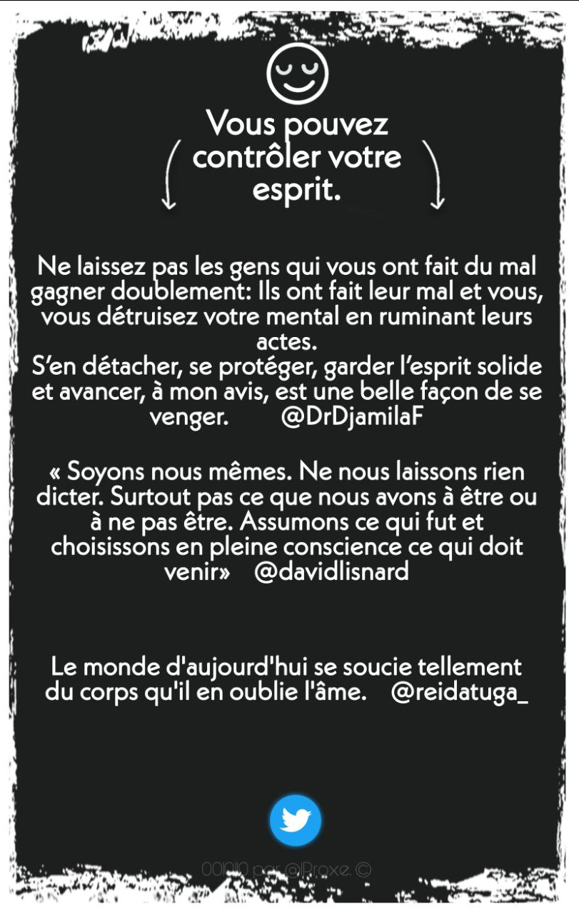 À l'avenir je partagerai d'autres tweets ainsi que plusieurs comptes de la twittosphère, de personnes éclairées qui ont une parole consciencieuse. Et comme vous l'avez remarqué peut-être + de format numérique moins d'écrits bruts. Je pense que c'est plus homogène pour vos yeux ✒