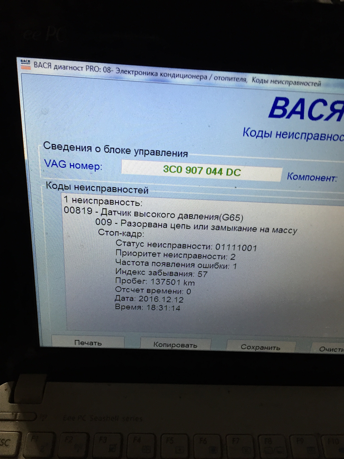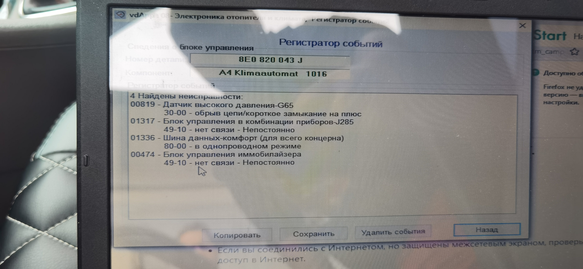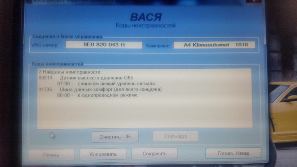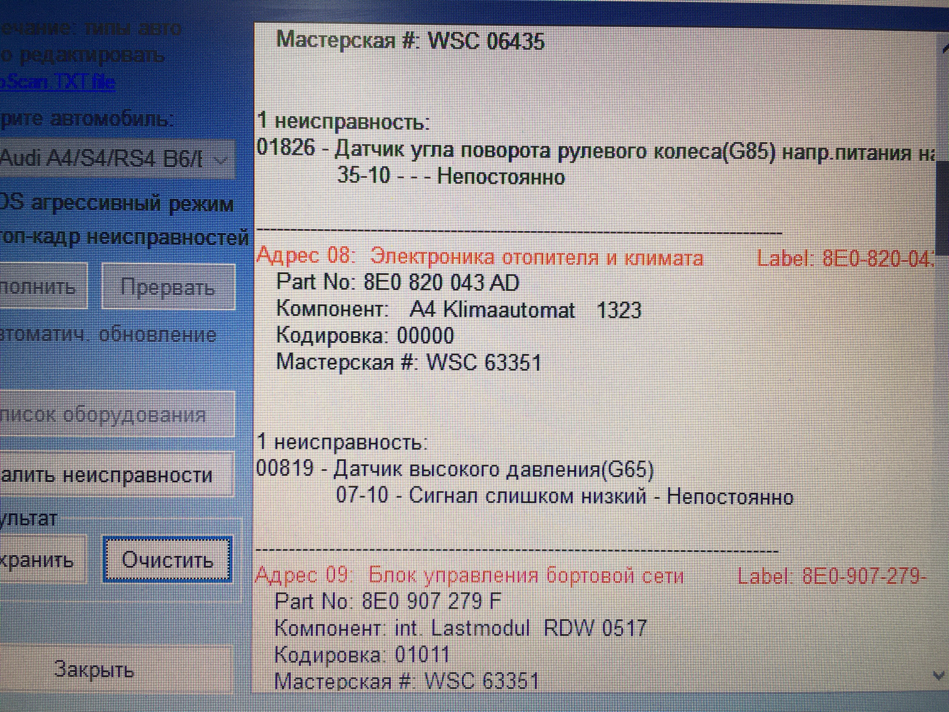 00819 ошибка ауди 116 фото