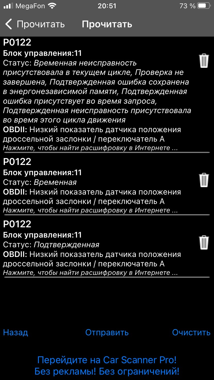 0122 ошибка ваз