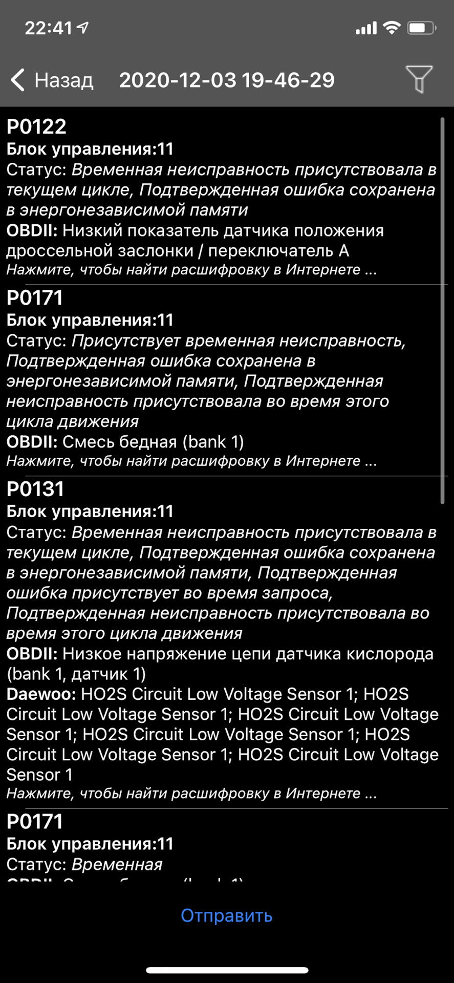 0122 ошибка ваз 143 фото