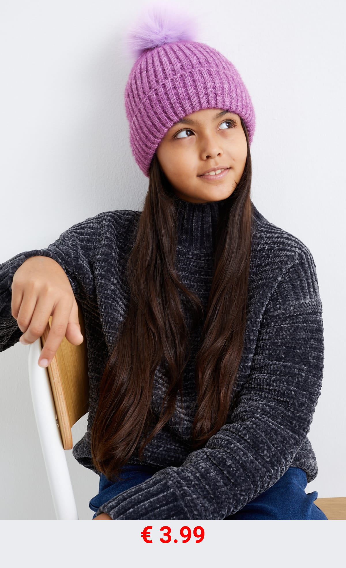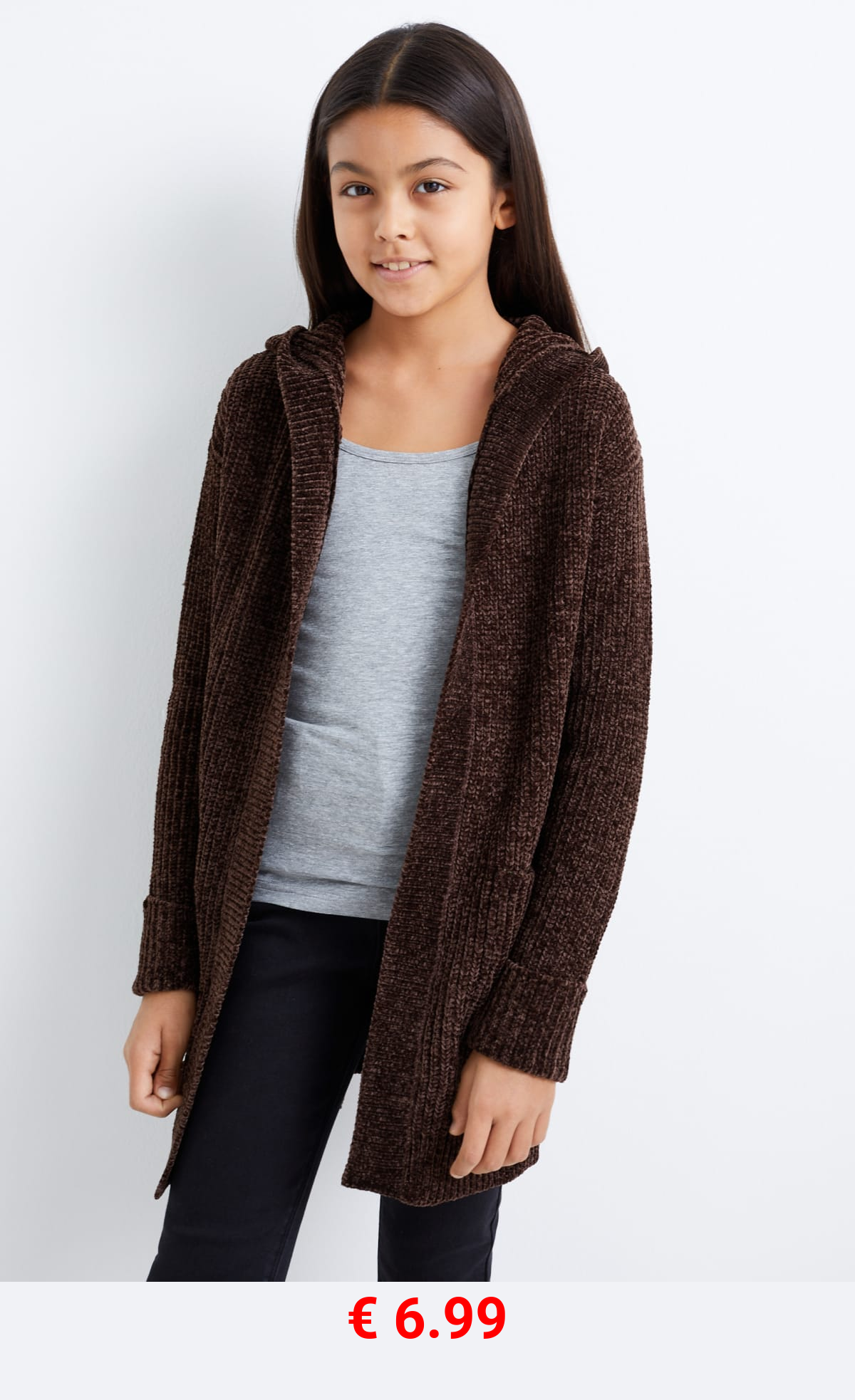 € 6.99 Chenille-Strickjacke mit Kapuze