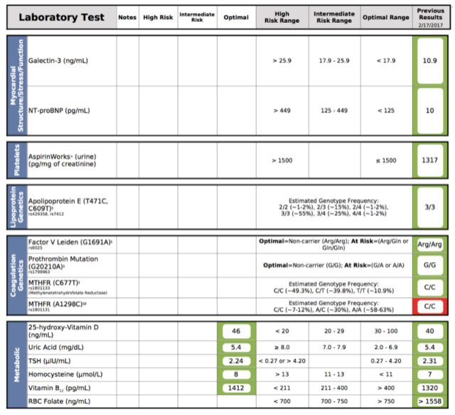 Тут стоит упомянуть некоторые генетические факторы, о которых вы должны знать. Особенно важна информация об ApoE (ключевой ген в определении вероятности заболеть Альцгеймером; у меня низкий) и MTHFR (очень неприятная штука, из-за которой у меня плохо перерабатывается витамин В12).