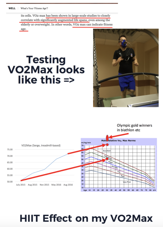 Мой VO2Max очень сильно поднялся со временем и сейчас близок к показателям олимпийских медалистов, хотя никаких атлетических достижений у меня нет и я не нагружаю свой организм так, как они.