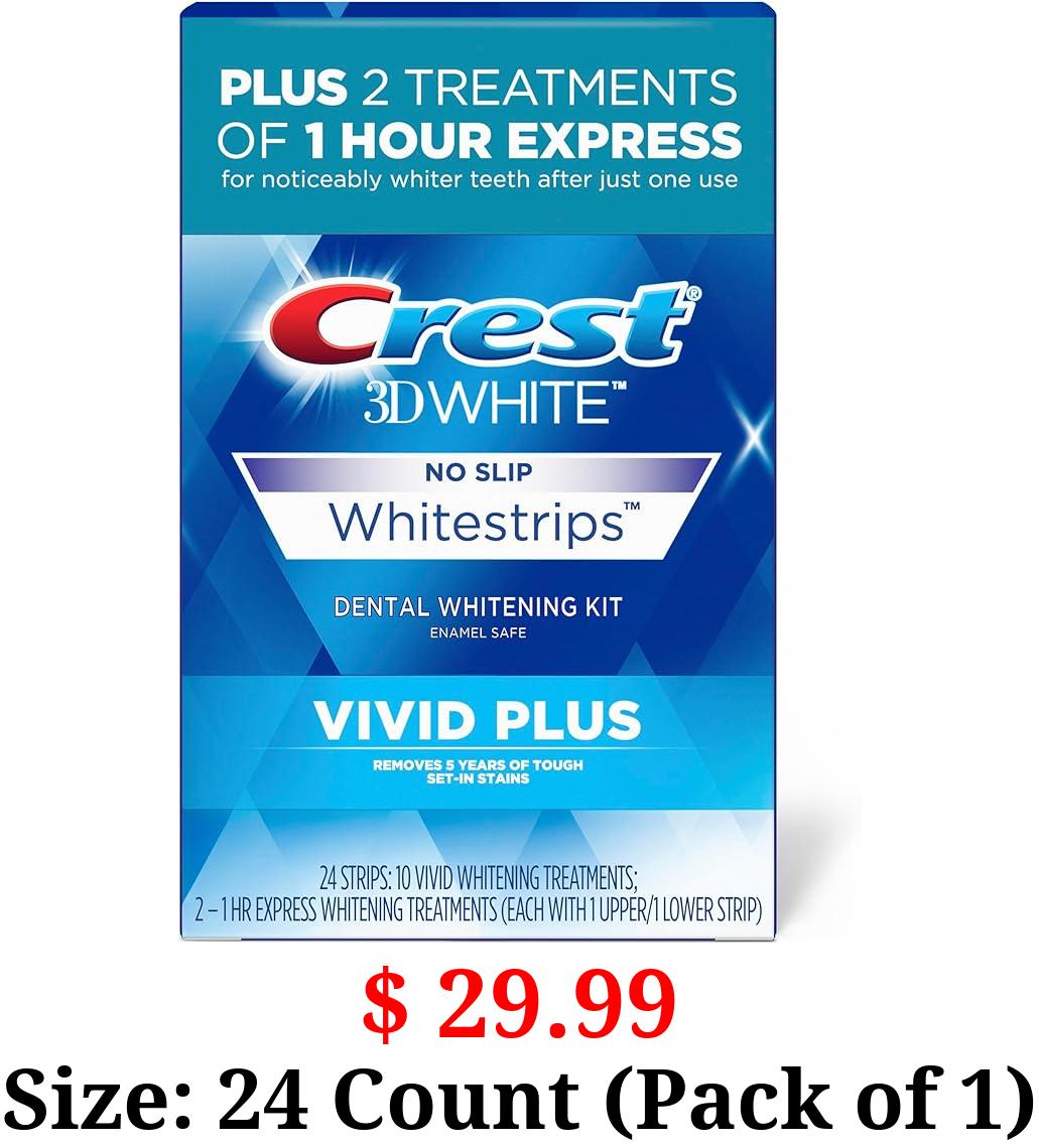 $ 29.99 Size: 24 Count (Pack of 1) Crest 3D Whitestrips, Vivid Plus, Teeth Whitening Strip Kit, 24 Count (Pack of 1)