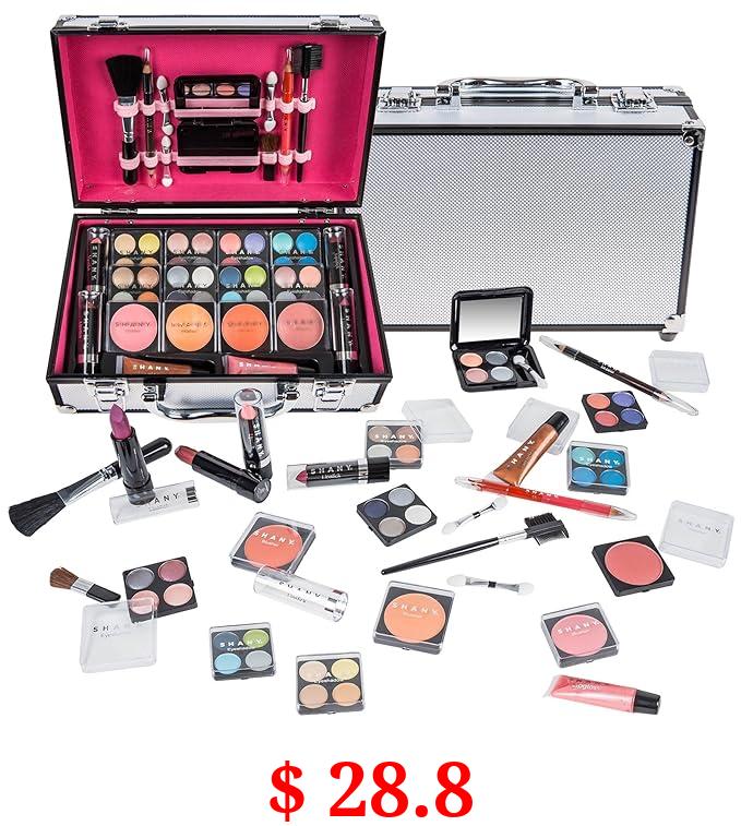 $ 28.8 SHANY Carry All Makeup Train Case with Pro Makeup Set, Makeup Brushes, Lipsticks, Eye Shadows, Blushes, Powders, and more - Reusable Makeup Storage - Premium Gift Packaging - Silver