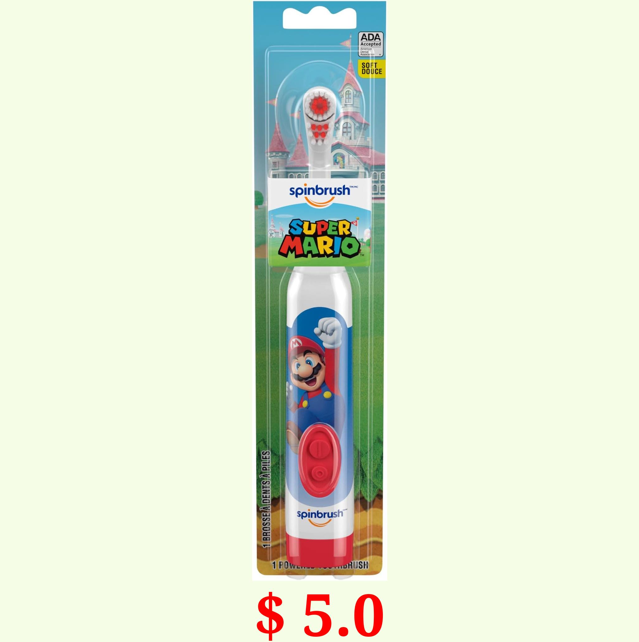 $ 5.0 Spinbrush Super Mario Kid’s Electric Battery Toothbrush, Soft, 1 ct, Character May Vary