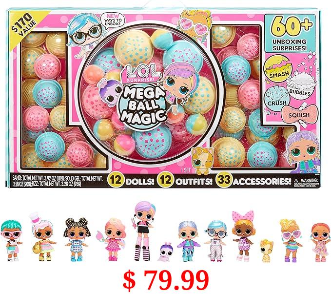 $ 79.99 L.O.L. Surprise! Mega Ball Magic - 12 Collectible Dolls, 60+ Surprises, 170 Value, 4 Unboxing Experiences, Squish Sand, Bubbles, Gel Crush, Shell Smash, Fashions Limited Edition Gift,Girls 3+