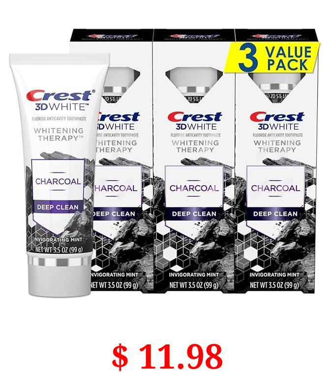$ 11.98 Crest 3D White Whitening Therapy Charcoal Deep Clean Fluoride Toothpaste, Invigorating Mint, 3.5 Ounce, Pack of 3