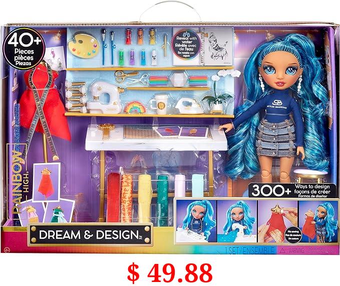 $ 49.88 Rainbow High Dream & Design Fashion Studio Playset. Fashion Designer Playset with Exclusive Blue Skyler Doll. Plus Easy No Sew Fashion Kit. Gift for Kids 4-12 & Collectors