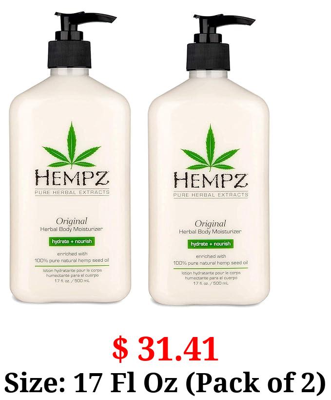 $ 31.41 Size: 17 Fl Oz (Pack of 2) Hempz Original, Natural Hemp Seed Oil Body Moisturizer with Shea Butter & Ginseng, Pure Herbal Skin Lotion for Dryness, Nourishing Vegan Cream, Floral and Banana, 17 Fl Oz, 2 Pack