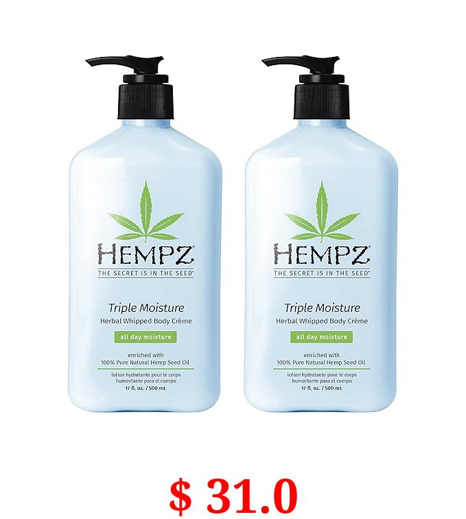 $ 31.0 Hempz Triple Moisture Herbal Whipped Body Crème Lotion Moisturizer, 17 Fl Oz (Pack of 2)