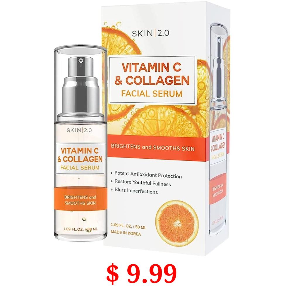 $ 9.99 Vitamin C Serum With Collagen - Korean Skin Care Face Serum for Dark Spots & Skin Brightening - Anti Aging & Acne Facial Serum - Cruelty Free Vegan Skincare For All Skin Types - 1.69Fl. oz by Skin 2.0