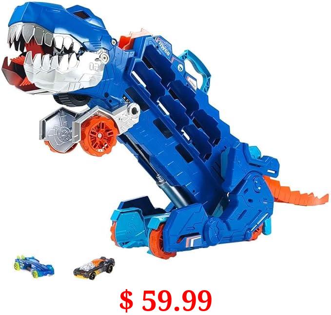 $ 59.99 Hot Wheels City Ultimate Hauler, Transforms into Stomping T-Rex with Race Track, Lights and Sounds, Toy Storage for 20+ 1:64 Scale Cars