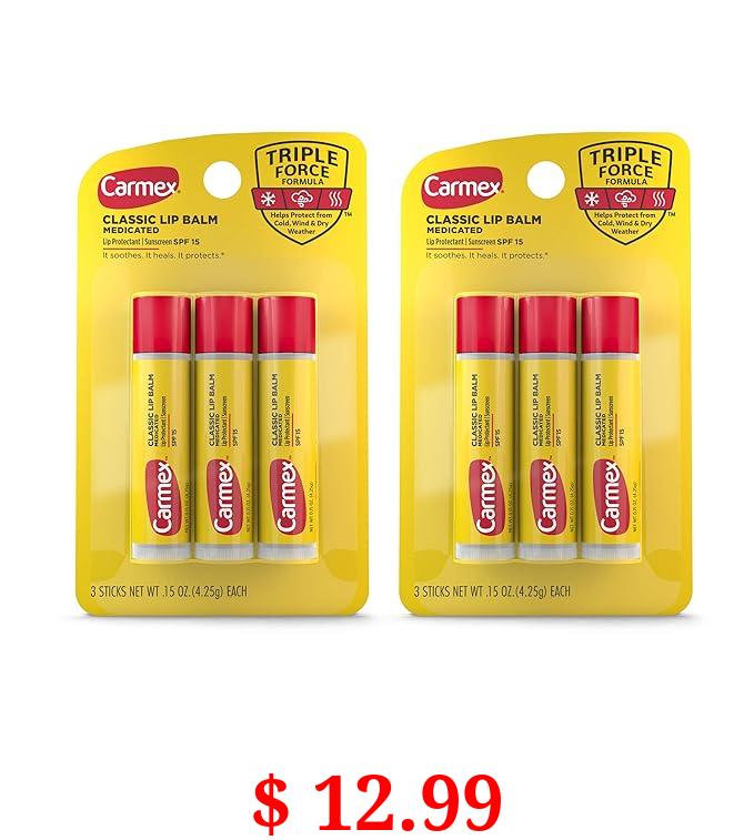 $ 12.99 Carmex Medicated Lip Balm Sticks, Lip Moisturizer for Dry, Chapped Lips, 0.15 OZ - (2 Packs of 3)