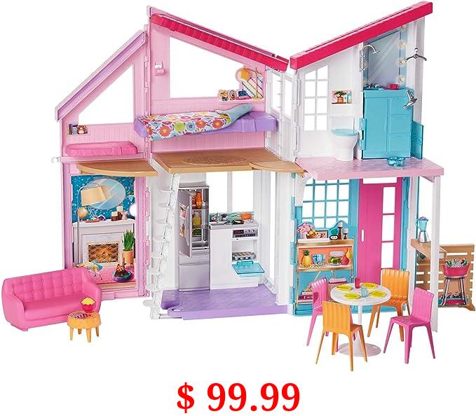 $ 99.99 Barbie Malibu House 2-Story, 6-Room Dollhouse with Transformation Features, Plus 25+ Pieces Including Furniture, Patio Fence and Accessories, for Kids 3 Years Old and Up