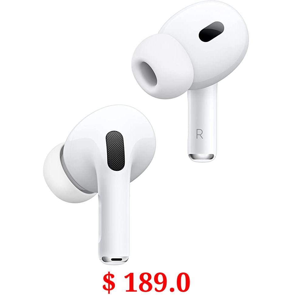 $ 189.0 Apple AirPods Pro (2nd Generation) Wireless Ear Buds with USB-C Charging, Up to 2X More Active Noise Cancelling Bluetooth Headphones, Transparency Mode, Adaptive Audio, Personalized Spatial Audio