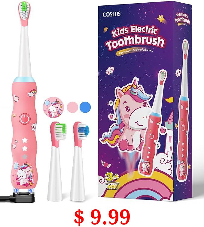 $ 9.99 Kids Sonic Rechargeable Electric Toothbrush: Interactive Smart LED Light Toddler Silicone Tooth Brush with 3 Cleaning Modes 2 Minute Timer IPX7 Waterproof 2 Soft Bristles Heads for Boys Girls Ages 3+