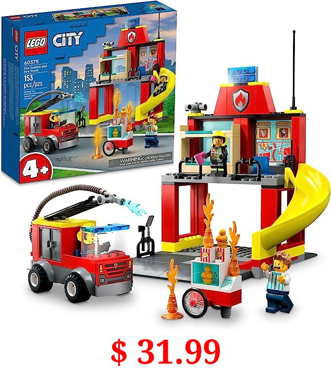 $ 31.99 Lego City Fire Station and Fire Engine 60375, Pretend Play Fire Station with Firefighter Minifigures, Educational Vehicle Toys for Kids Boys Girls Age 4+