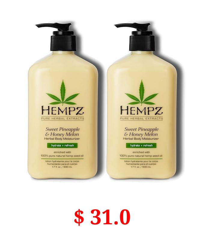 $ 31.0 Hempz Sweet Pineapple & Honey Melon Moisturizing Skin Lotion, Natural Hemp Seed Herbal Body Moisturizer with Jojoba, Natural Extracts, Vitamin A and E, 17 oz, 2 Pack Bundle