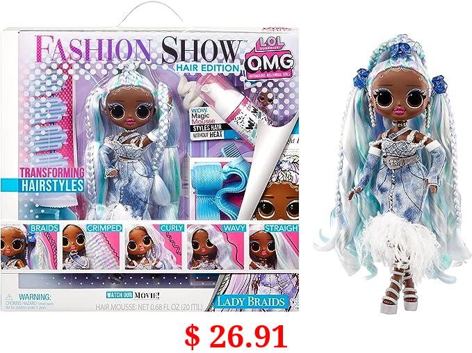 $ 26.91 LOL Surprise OMG Fashion Show Hair Edition Lady Braids 10" Fashion Doll w/Magic Mousse, Transforming Hair, Including Stylish Accessories, Holiday Toy Playset, Gift for Kids Ages 4 5 6+ & Collectors