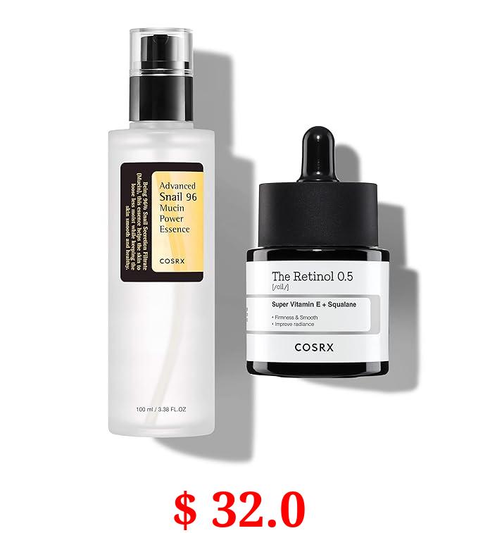 $ 32.0 COSRX Skin Cycling Routine - Snail Mucin 96% Essence + Retinol 0.5 Oil, Recovery Set for Face and Neck, Fine Lines Spot Treatment, Repair Oil for Face