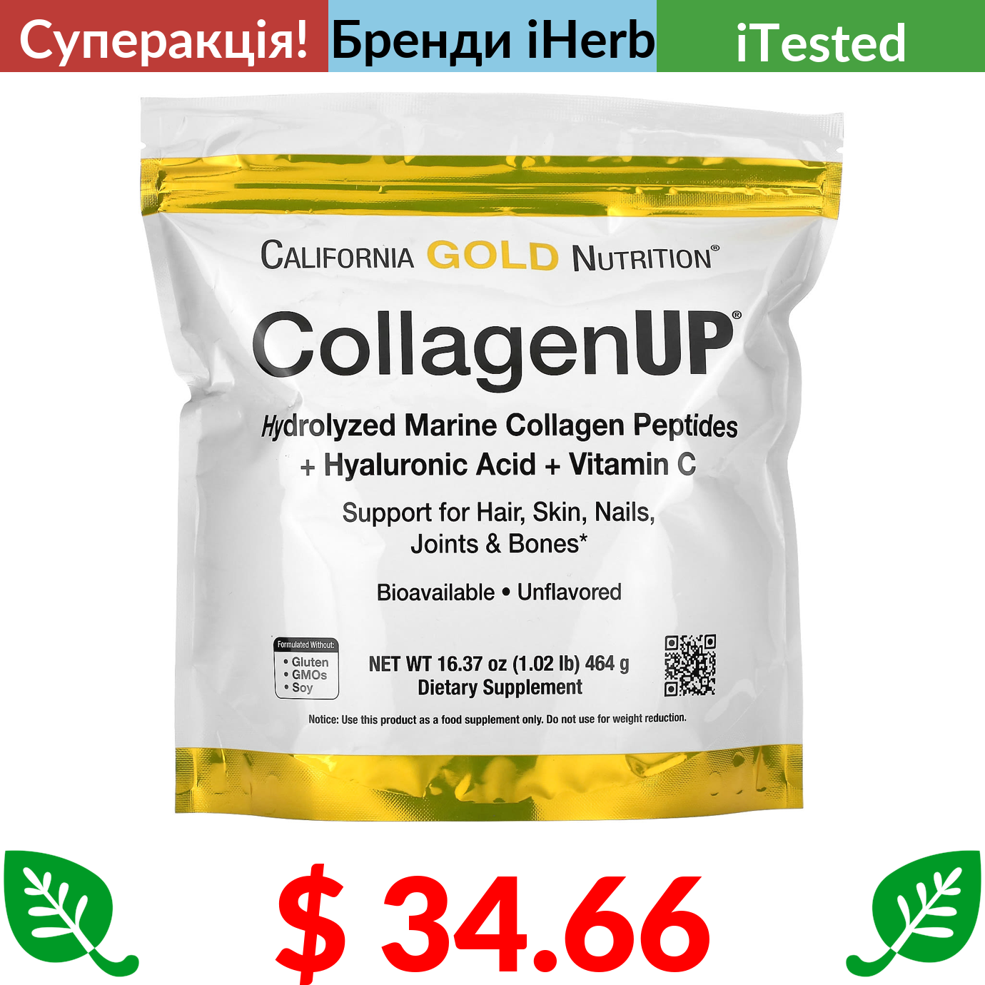 $ 2.95 California Gold Nutrition, Gold C, вітамін С, 1000 мг, 60 вегетаріанських капсул