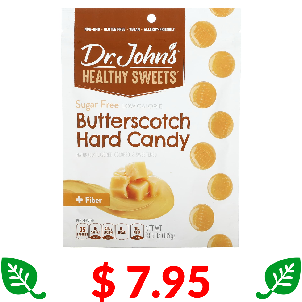 $ 7.95 Dr. John's Healthy Sweets, Цукерки Butterscotch, + клітковина, без цукру, 3,85 унції (109 г)