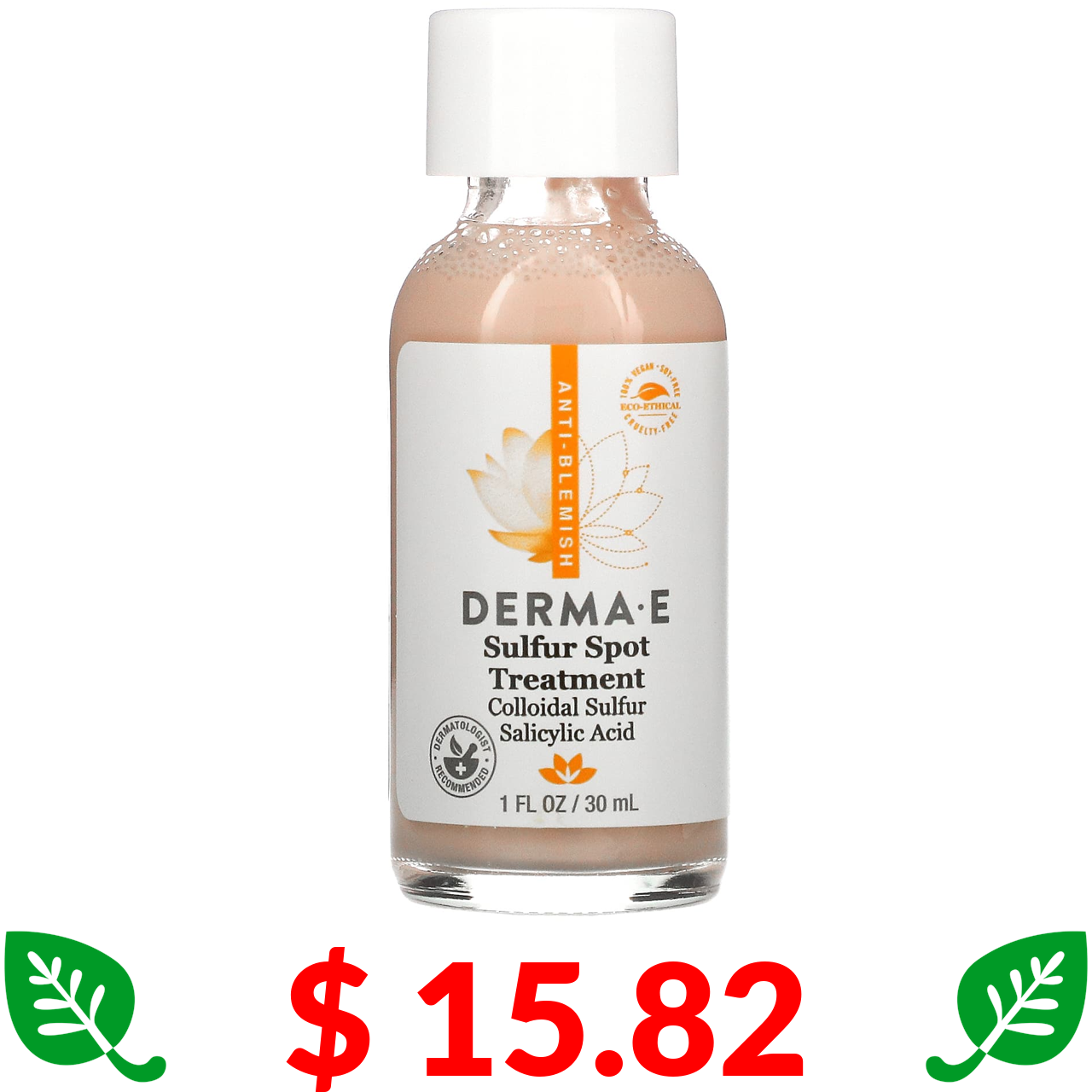 $ 15.82 DERMA E, Sulfur Spot Treatment, 1 fl oz (30 ml)